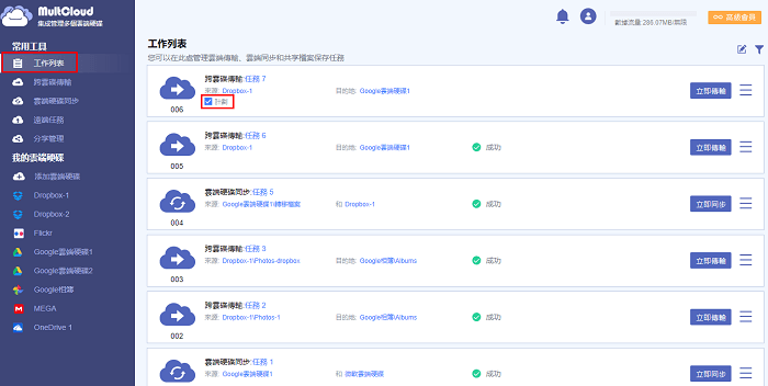 提示:MultCloud不會永久存儲使用者的檔案。資料傳輸完成後,資料將從MultCloud資料庫中刪除。
