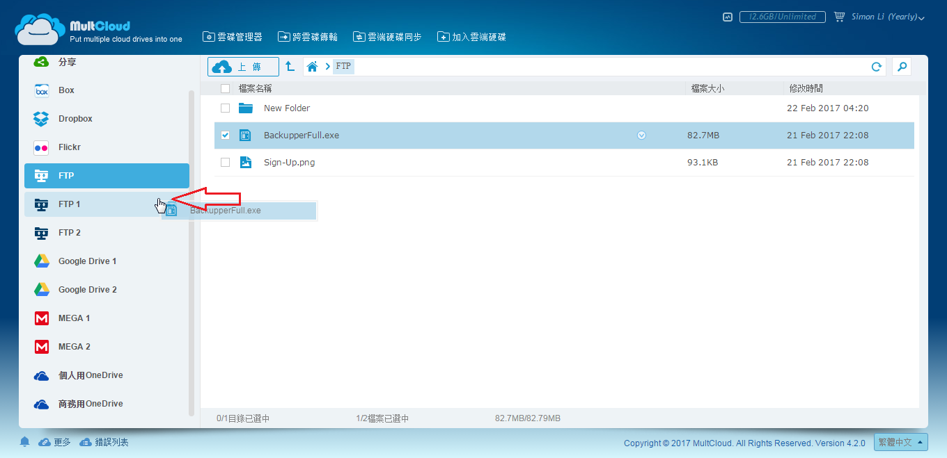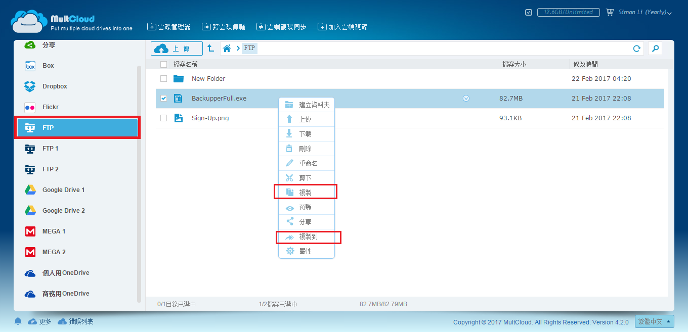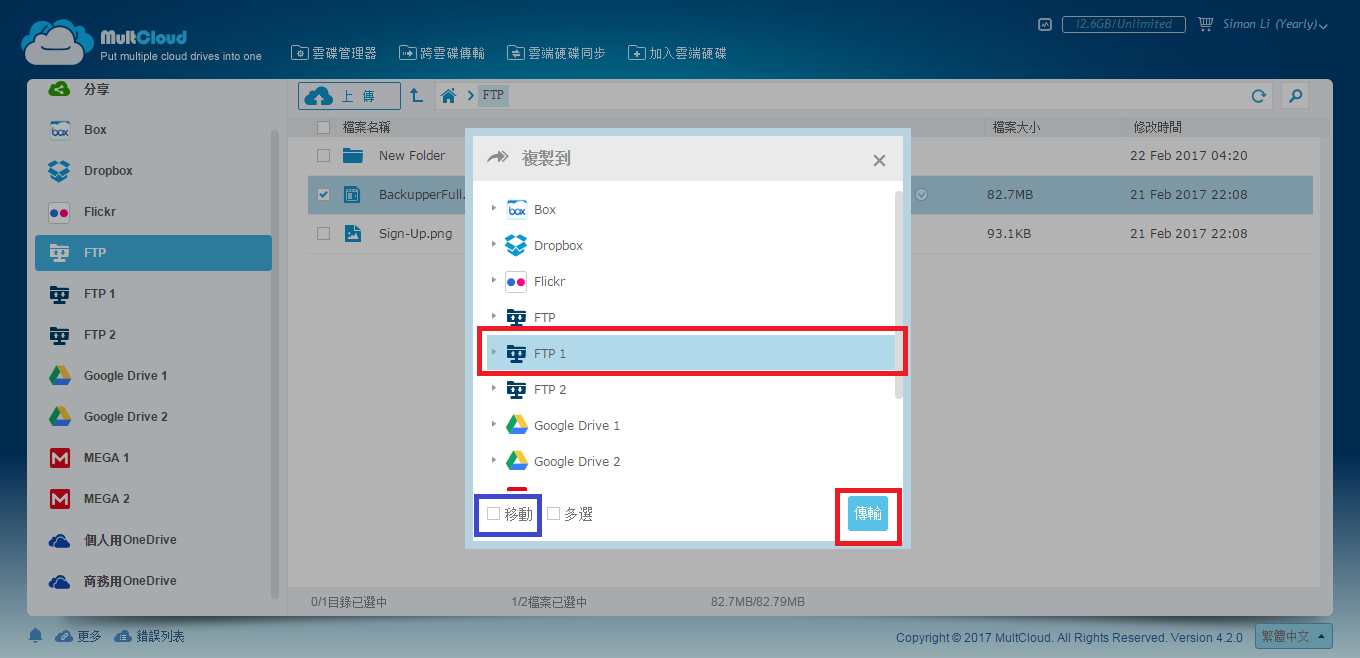 如何使用MultCloud把一個FTP伺服器的資料複製到另一個?